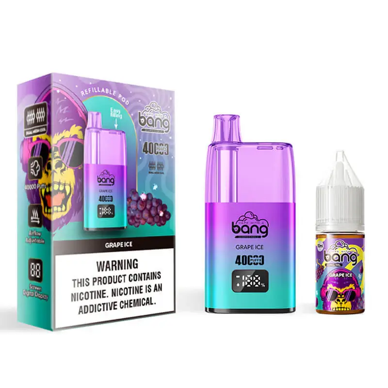 Der Bang 40000 40K bietet vier Nikotinstärken, um den unterschiedlichen Bedürfnissen der Nutzer gerecht zu werden. Von nikotinfrei (0 %) bis hin zu einer stärkeren Option (5 %) ermöglicht diese Auswahl eine flexible Anpassung an individuelle Vorlieben. Die präzise Dosierung sorgt für ein konsistentes Erlebnis bei jedem Zug.