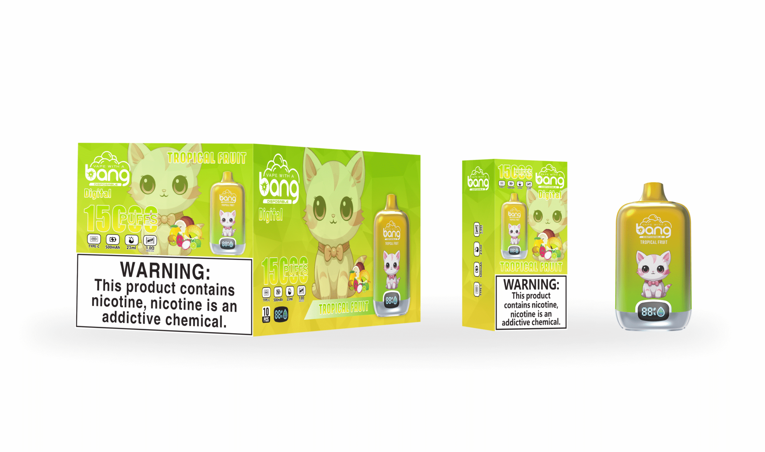 Die Bang Digital Box 15000 Puffs bietet bis zu 15000 Züge, 20 ml E-Liquid, 850 mAh wiederaufladbare Batterie und Mesh-Coil-Technologie für intensiven Geschmack. Mit 20 mg/ml Nikotinstärke und kompaktem Design ideal für langfristigen Genuss.
