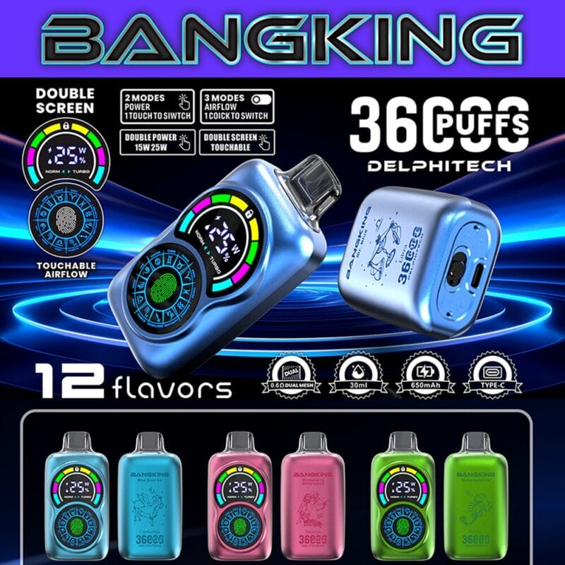 Die Bang King 36000 ist in verschiedenen Nikotinstärken erhältlich (0 %, 2 %, 3 %, 5 %), um den individuellen Bedürfnissen der Nutzer gerecht zu werden. Diese Flexibilität ermöglicht es, das Erlebnis präzise an persönliche Vorlieben anzupassen, sei es nikotinfrei oder mit stärkerer Intensität.