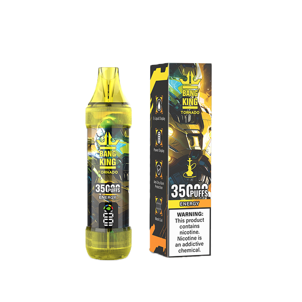 Der Bang King Tornado 35000 ist eine hochmoderne Einweg-E-Zigarette, die durch ihre beeindruckende Leistung und innovative Technologie besticht. Mit bis zu 35.000 Zügen bietet dieses Gerät eine langlebige Nutzung und eine Vielzahl an Geschmacksrichtungen, die für jeden Geschmack etwas bereithalten. Die Kombination aus einem leistungsstarken Akku, großzügiger E-Liquid-Kapazität und fortschrittlicher Technologie macht den Bang King Tornado 35000 zur idealen Wahl für anspruchsvolle Nutzer, die Wert auf Qualität und Zuverlässigkeit legen. Die Marke Bang King steht für Präzision und hochwertige Verarbeitung, was dieses Produkt zu einem unverzichtbaren Begleiter für den Alltag macht.