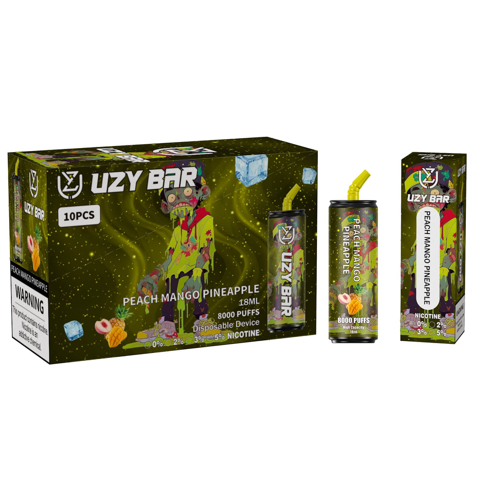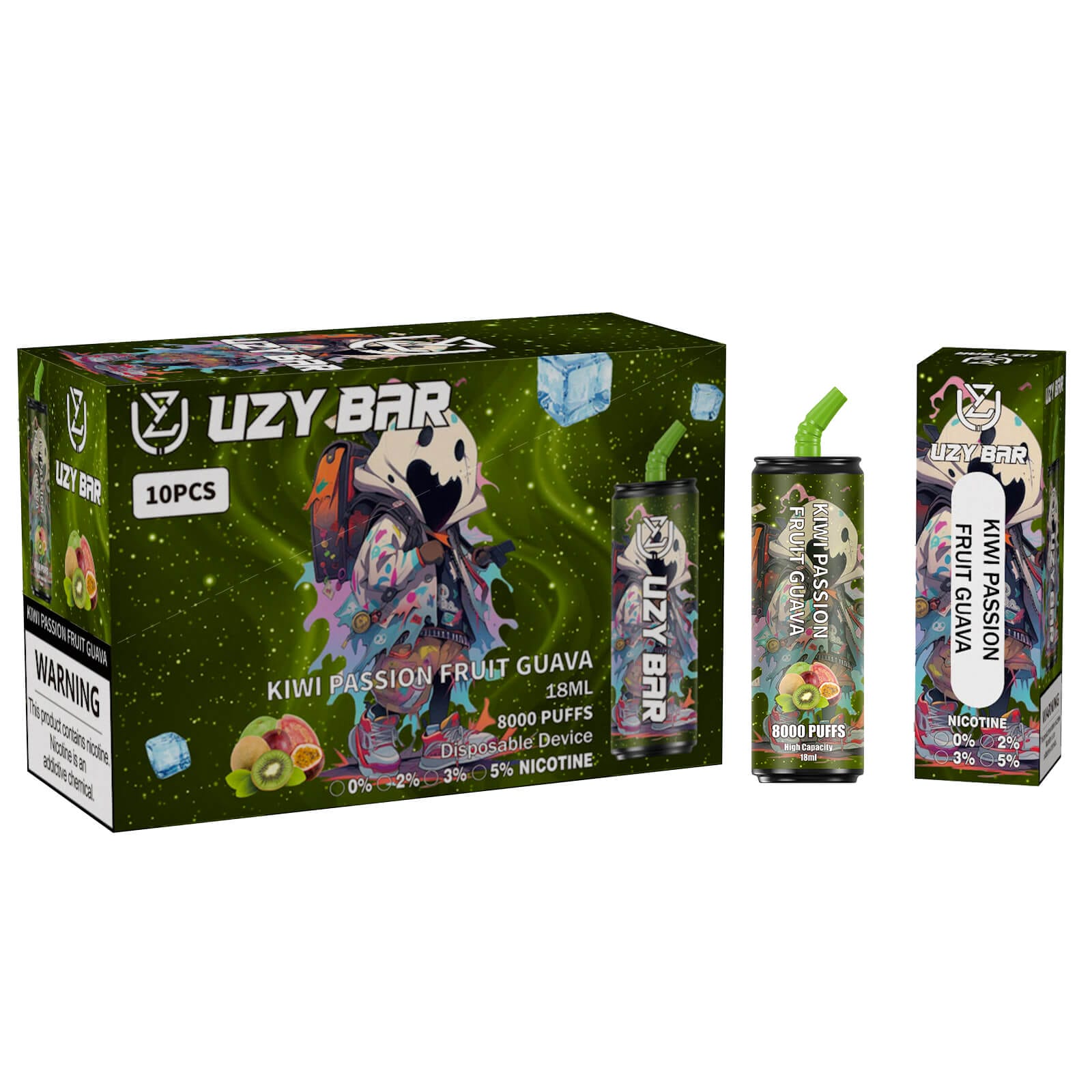 Die UZY BAR 8000 Puffs ist in verschiedenen Nikotinstärken erhältlich (0 %, 2 %, 3 %, 5 %), um den individuellen Vorlieben der Nutzer gerecht zu werden. Diese Flexibilität ermöglicht es, die Intensität des Erlebnisses anzupassen, sei es für eine nikotinfreie Option oder eine stärkere Variante. Die präzise Dosierung gewährleistet eine konsistente Qualität bei jedem Zug.