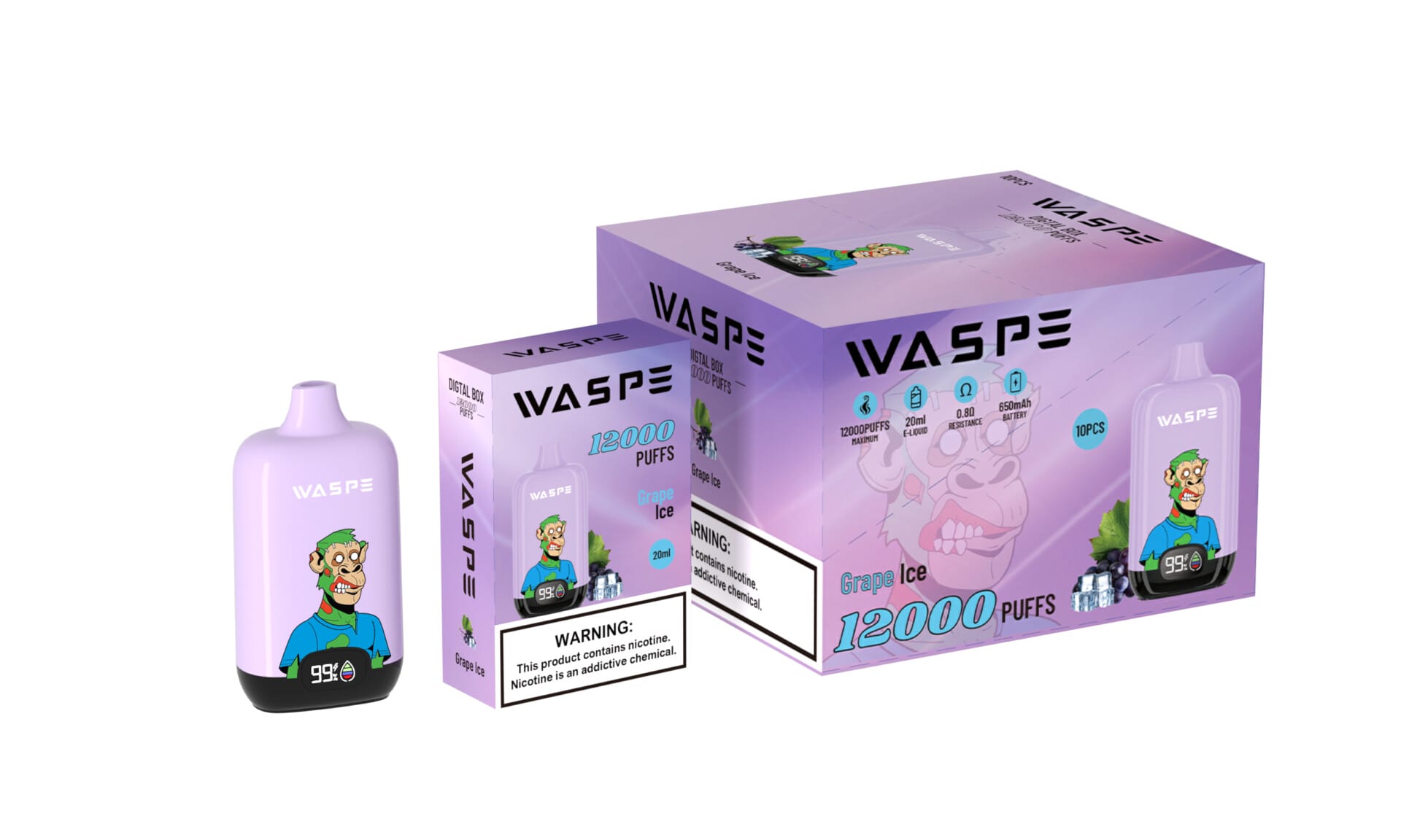 WASPE Digital Box 12000 – Bis zu 12.000 Züge, 20 ml E-Liquid, 850 mAh Typ-C-Akku und Mesh-Coil für intensiven Geschmack. Wählen Sie aus 0–5 % Nikotin und vielfältigen Aromen. Qualität und Langlebigkeit von WASPE!