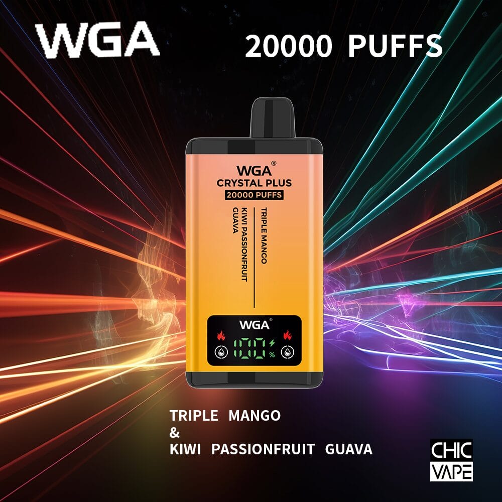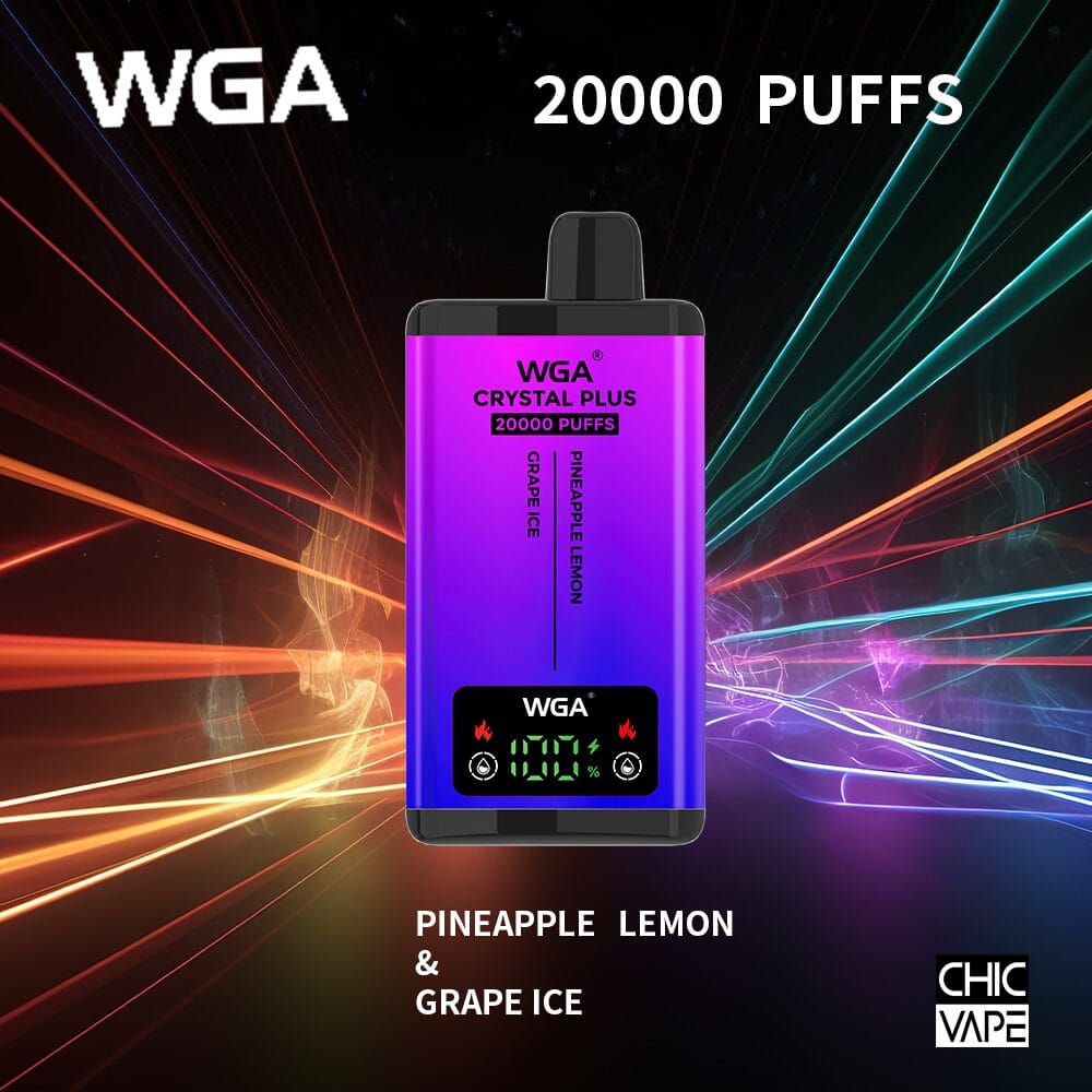 WGA Crystal Plus 20000 Einweg-E-Zigarette mit bis zu 20.000 Zügen, 30 ml Dual-Geschmackssystem, 650-mAh-Akku mit USB-Typ-C, Dual-Mesh-Coil und LCD-Display. Erhältlich in 0 %, 2 %, 5 % Nikotinstärken für intensives, langlebiges Dampfen.